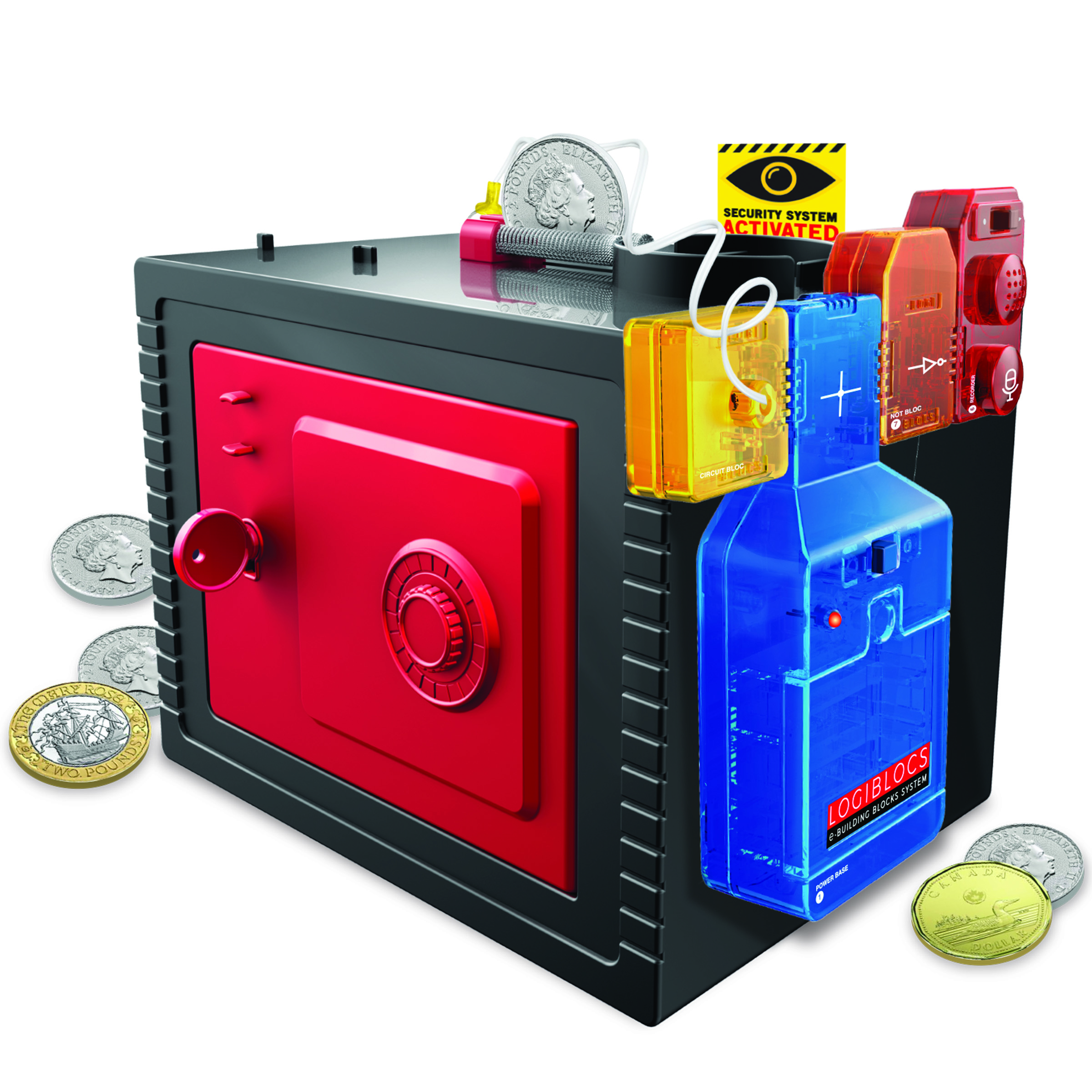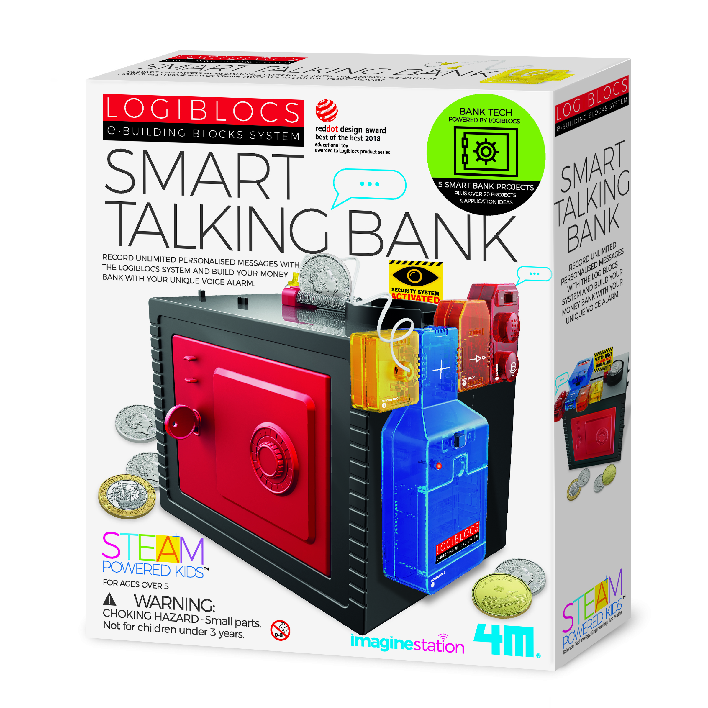 Build a money bank with a unique voice alarm and record unlimited personalized messages with the Logiblocs Smart Talking Bank! Have fun thanking anyone who contributes money to your savings. You can also record a warning alarm to stop intruders from trying to steal your money!